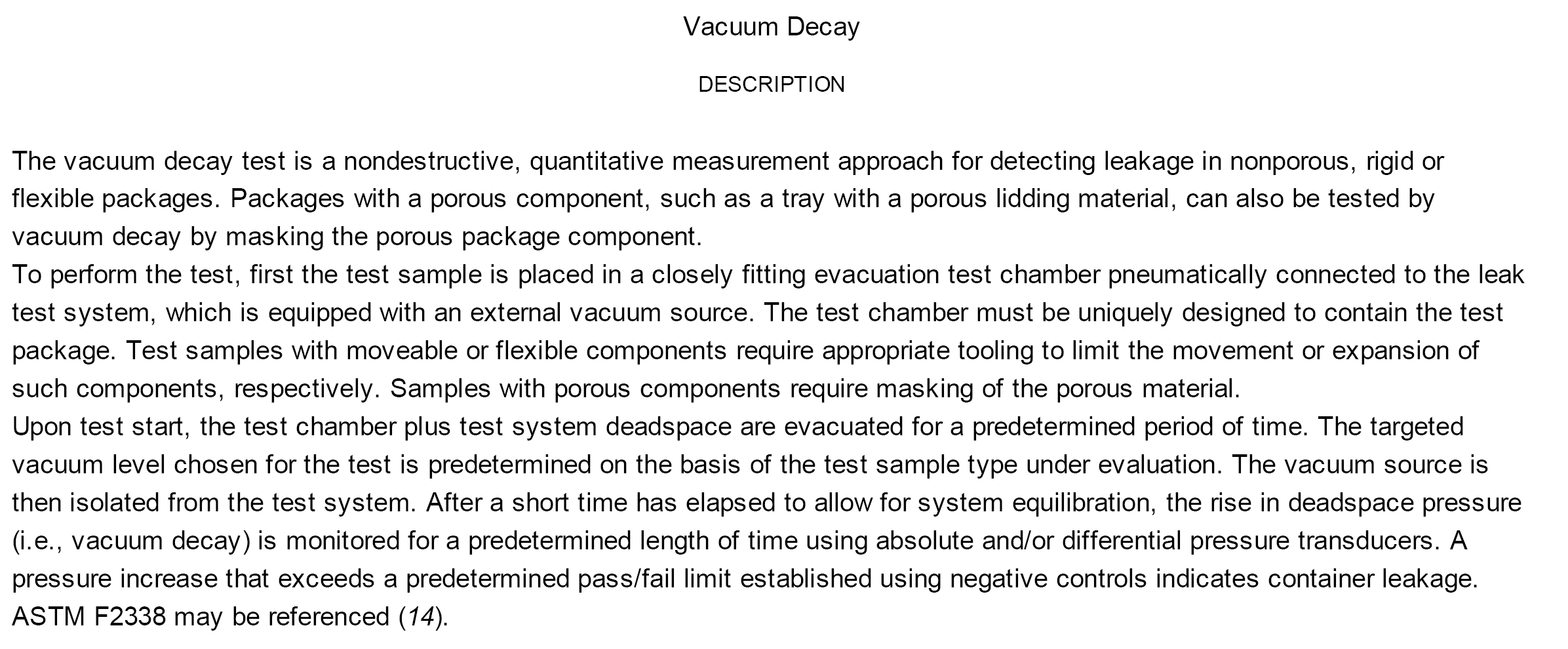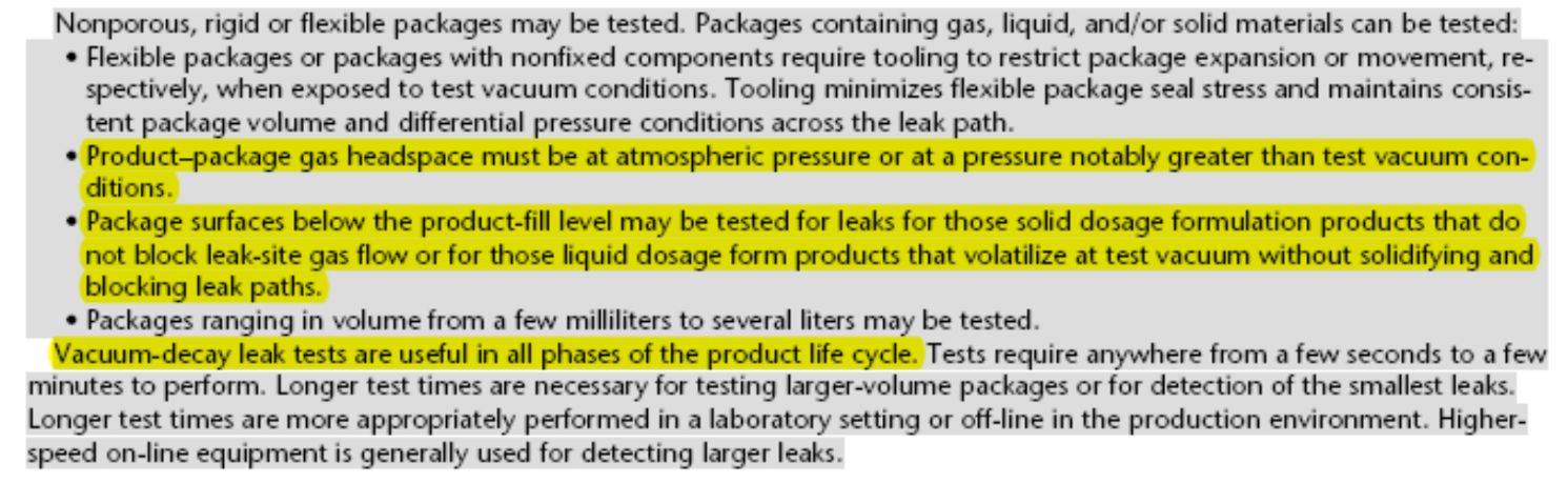 1. 真空衰减法最适用于检测刚性容器,且容器内样品为水性小分子量的产品;