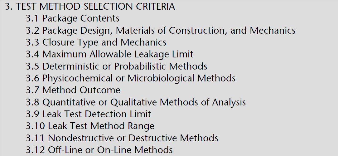 在USP第一章节中USP详细论述了检测方法需根据不同的包装设计、包装材质、包装内容物、包装方式、产品生命周期等进行相关选择: